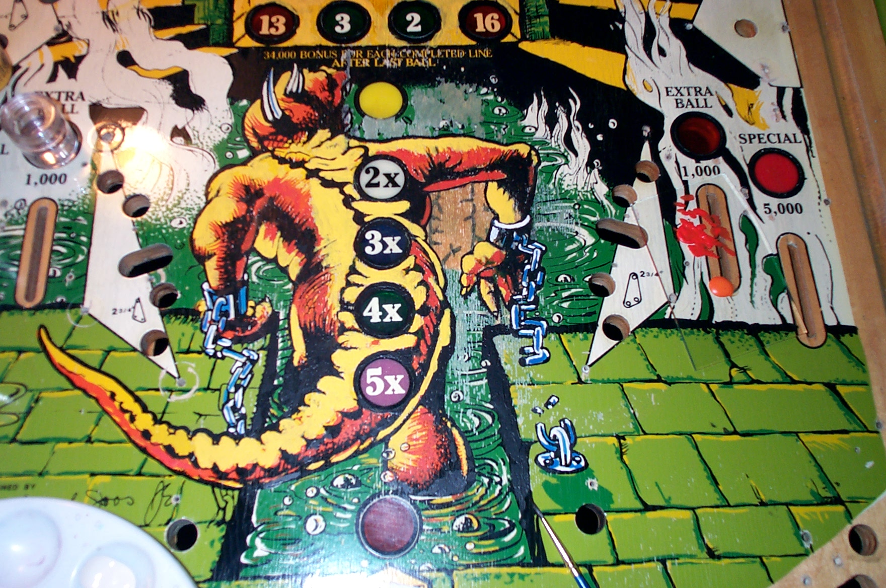 Trying to see if I can even do this. So far I think it looks ok, just throwing down the major color areas. Will need to fill in the low spots with a couple of layers. Also trying to fill in the massive ball wear, the dragon was pretty much half gone. Then it will be detailing time.